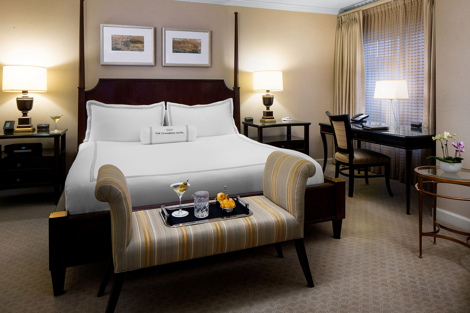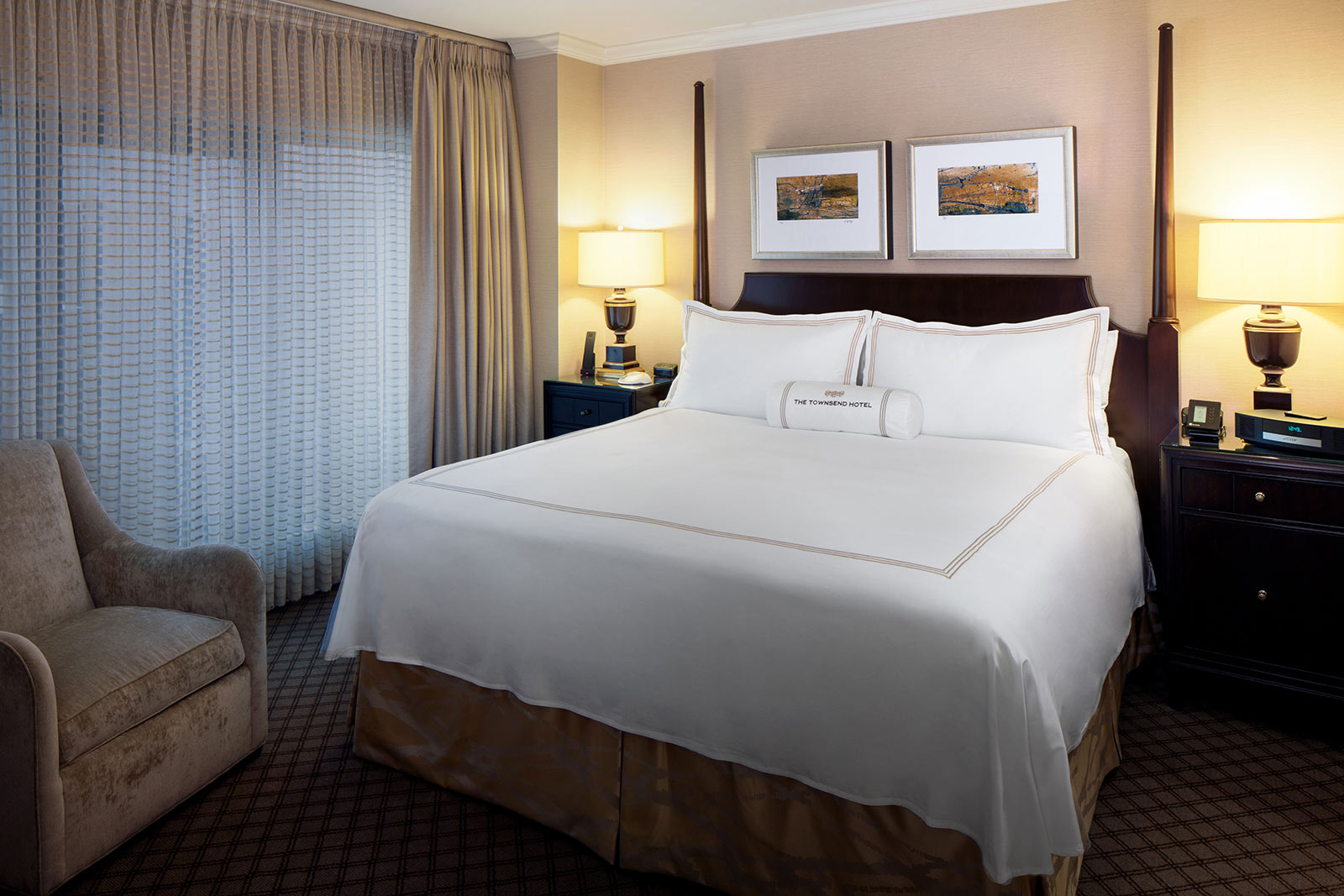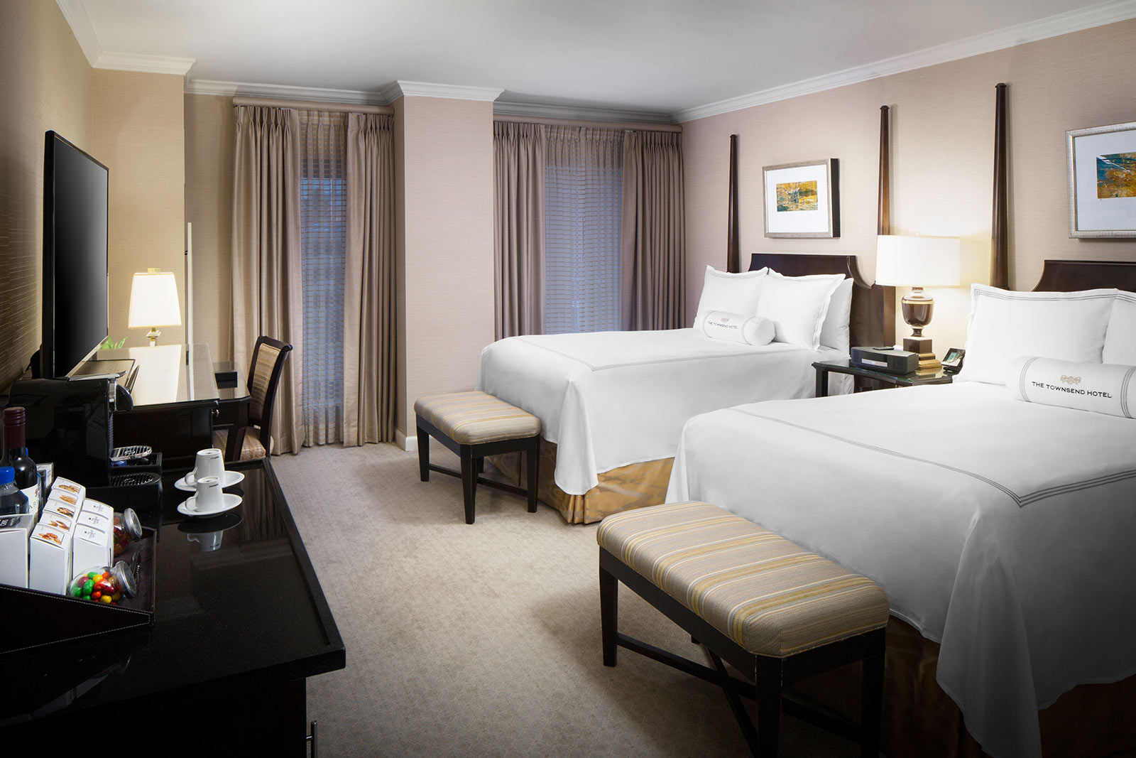 Opened in 1988, The Townsend Hotel is AAA Four-Diamond and Forbes Travel Guide Four-Star boutique luxury property with 150 guestrooms, including nine penthouses and specialty suites. Across the years, The Townsend has been the proud recipient of a variety of travel and hospitality industry publication and traveller survey accolades, including Travel + Leisure.